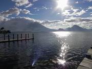 ![]() 3.11. Ráno + krása, výhled na jezero-fotky. Pak jsme se šli projít a dali jsme si čerstvý pomerančový džus před námi vymačkaný a ještě jeden -repete, pár fotek indiánských žen, které ručně prali prádlo v jezeře. Pak snídaně na terase s výhledem na jezero a rychlý nápad, že pojedeme do Panajachel dohodnout potápění, protože nám v Santa Cruz la Laguna řekli, že zítra nemají čas. Chtěli za 2 ponory z lodě s půjčením výstroje 60USD (to je dobré). V Panajachel naháněči řekli, že tam nikdo na potápění není. Tak jsme sehnali tuk tuk a nechali se dovézt do městečka Santa Catarina. Tam krátká procházka až do dílny, kde tkali koberce, zde pár fotek. Pak dále do městečka San Antonio. Zajímavé je, že mezi oběma městečky je vzdálenost 5km, ale žijí zde jiní lidé, jiný kmen, nosí jiné kroje, jiná řeč… zvláštní. Pár foto a sestup po schodech do malinké restaurace u jezera, odkud jsou krásné výhledy a fotky s jezerem, sopkami Atitlán, Tolimán i San Pedro i dřevěnými loďkami. Jídlo bylo klasické, kuře, zelenina a pivko. Pohostili jsme i tuktukáře, hodně děkoval. Pak jsme se přátelsky rozloučili a jeli do dílny na výrobu místní keramiky. No a pak zpět do Panajachel. Cestou ještě pár fotek. Loďka do San Pedra plula tentokrát přímo a nad sopkou San Pedro byl obrovský mrak ve tvaru těla a rukou ve kterém se blýskalo. Stále se zvětšoval. Byli jsme již znaveni a já neměl chuť dohadovat ceny na zítřejší výlety. Pak večeře na ulici, placky s nějakou omáčkou a spát.