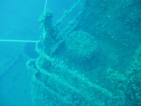 27.5. trajekt dorazil do Olbie asi v 8hod, pak jsme přejeli do přístavu Porto Rotundo, kde kotvila naše plachetnice. Počasí dle předpovědi mělo být větrné, ale asi po hodině nošení věcí jsme se nalodili. Váhali jsme jestli nezůstat přes noc, nakonec se rozhodlo, že jedem. Okolo 13hod. jsme vyjeli do zátoky Cala Cotticcio ostrova Caprera Island. Cestou jsme překonávali vlny asi 1m vysoké proti větru a vše se zdálo bez problémů. Pouze se nám ve větru 2x otočil do vody nafukovací člun tažený za plachetnicí i s motorem. V zátoce jsem provlékl lana betonovým kvádrem na dně v 17m hloubce a chvíli jsme se kochali nádhernou zátokou. Na noc jsme pro jistotu zajeli do zátoky Cala Portese, kde jsme přečkali poměrně klidně noc. Před spaním jsme dělali ještě servis upadnutého výfuku motoru Honda, který poháněl kompresor na plnění potápěčských lahví. 28.5. po probuzení jsme se z důvodu velkého větru a vln přepravili opět do zátoky Cala Cotticcio, kde jsme zakotvili 3-mi lany příď a dvěma lany záď k betonovému kvádru 0,7x1,5x1,5m v hloubce 17m. Během dne jsme v zátoce provedli jeden seznamovací ponor a nachytali jsme několik ryb a chobotnic. Po ponoru jsme s Martinem a Milošem provedli výsadek po větru na pevninu na nafukovacím člunu pomocí vesel. Tam jsme přešli útes a v zátoce našli barely, kterými jsme si chtěli označit vyvázaná lana pro další dny. Nazpět na loď jsme se ale proti větru nemohli dostat, tak to zkusil Martin sám a zlomil veslo. Naštěstí se tu objevil motorový člun, který když viděl jeho námahu, tak ho dotáhli k plachetnici. Jenže motor se nepodařilo nastartovat a tak jsme s Milošem měli prekérku, jak se dostat do plachetnice. Nakonec jsme se museli prodrat mezi skalami a roštím na špici zátoky asi na úroveň naší lodi a zkusit přeplavat. Vlny asi 1m nás nezaskočili a vzdálenost 150m jsme uplavali. Naštěstí zde nebyl žádný proud. Večer jsme si dali pár piv a slivovici a šli spát. Vítr dle předpovědi měl dosáhnout max. 80km/hod.